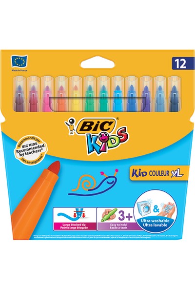 BIC Kids Kid Couleur XL Keçeli Boya Kalemi, 12’li Kutu