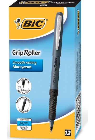 Bic Roller Glide Grip 0,5 Roller Kalem Siyah 12'Li Kutu